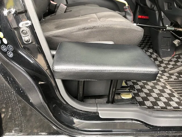 シート横に設置したプレートでシートと車いすの隙間を埋めることで、シートと車いす間の移乗をスムーズに行えるようにします。このプレートが有ると、安全、安心して車に移乗出来ますよ。