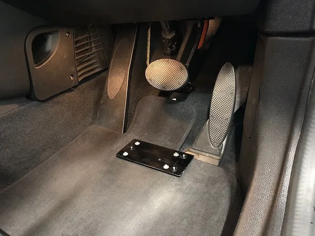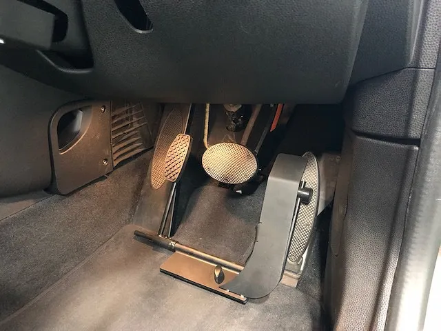 右足に麻痺などの症状で、アクセルが踏めない方が、左足でアクセルをコントロールします。